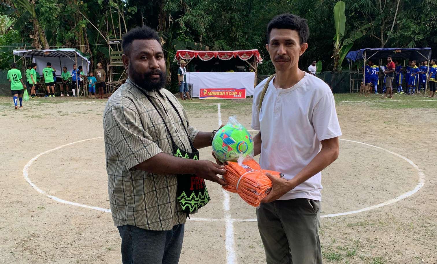 Pada kesempatan itu, Ronald juga menyerahkan bantuan dari AFK Manokwari kepada panitia penyelenggara turnamen Mangga II Cup V. Bantuan yang diberikan yakni bola untuk pertandingan serta rompi untuk wasit.