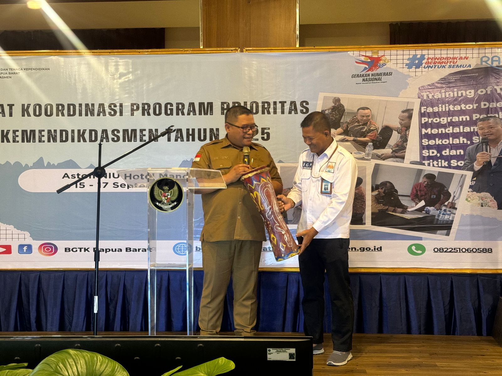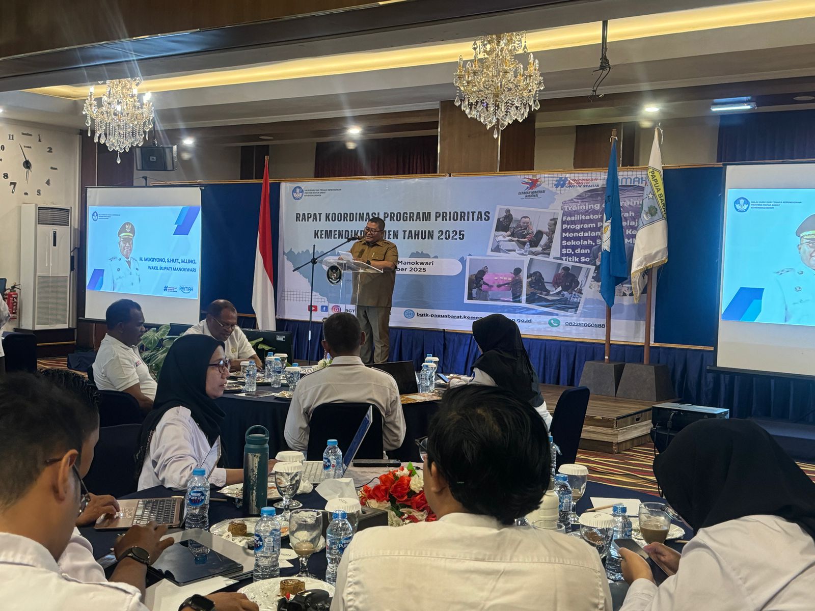 MANOKWARI, SURYA ARFAK – Wakil Bupati Manokwari, H. Mugiyono, membuka rapat koordinasi Program Prioritas Kementerian Pendidikan Dasar dan Menengah (Kemendikdasmen), Senin (15/9/2025). Rapat tersebut untuk menyatukan visi dan misi, menyelaraskan program dan kegiatan, serta memperkuat sinergi antara Dinas Pendidikan Provinsi Papua Barat dan Dinas Pendidikan Kabupaten Manokwari.