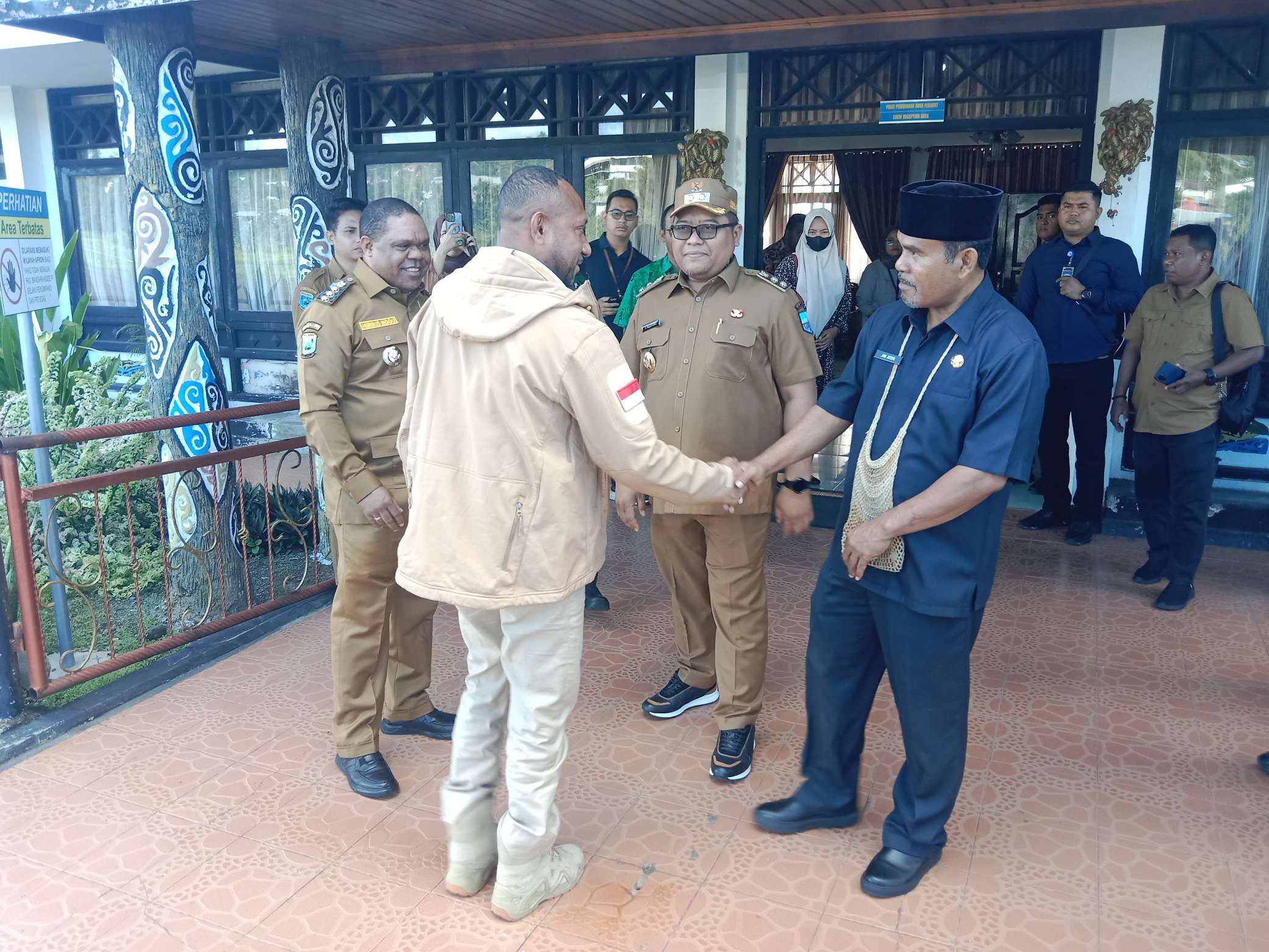 Kedatangan Yan Mandenas dalam rangka melakukan kunjungan kerja di kabupaten Manokwari.