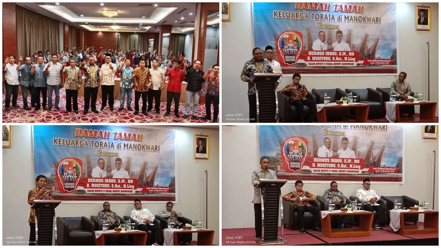 “Kami ambil keputusan atas dasar suara dari bawah. Jasi bottom up, bukan top down dan hasilnya dalam rapat bersama keluarga besar Toraja melalui perwakilannya malam ini 100 persen dukung HERO. Intinya sudah ada kesehatian untuk berjuang bersama menangkan Hermus-Mugiyono sebagai Bupati dan Wakil Bupati Manokwari berikut,” tandasnya.