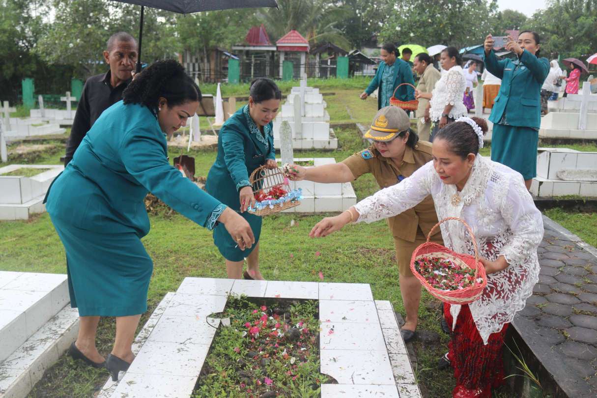 Dalam suasana khidmat dan penuh penghormatan, Ketua Tim Penggerak PKK Kabupaten Manokwari, Febelina Indou, memimpin upacara ziarah tersebut.