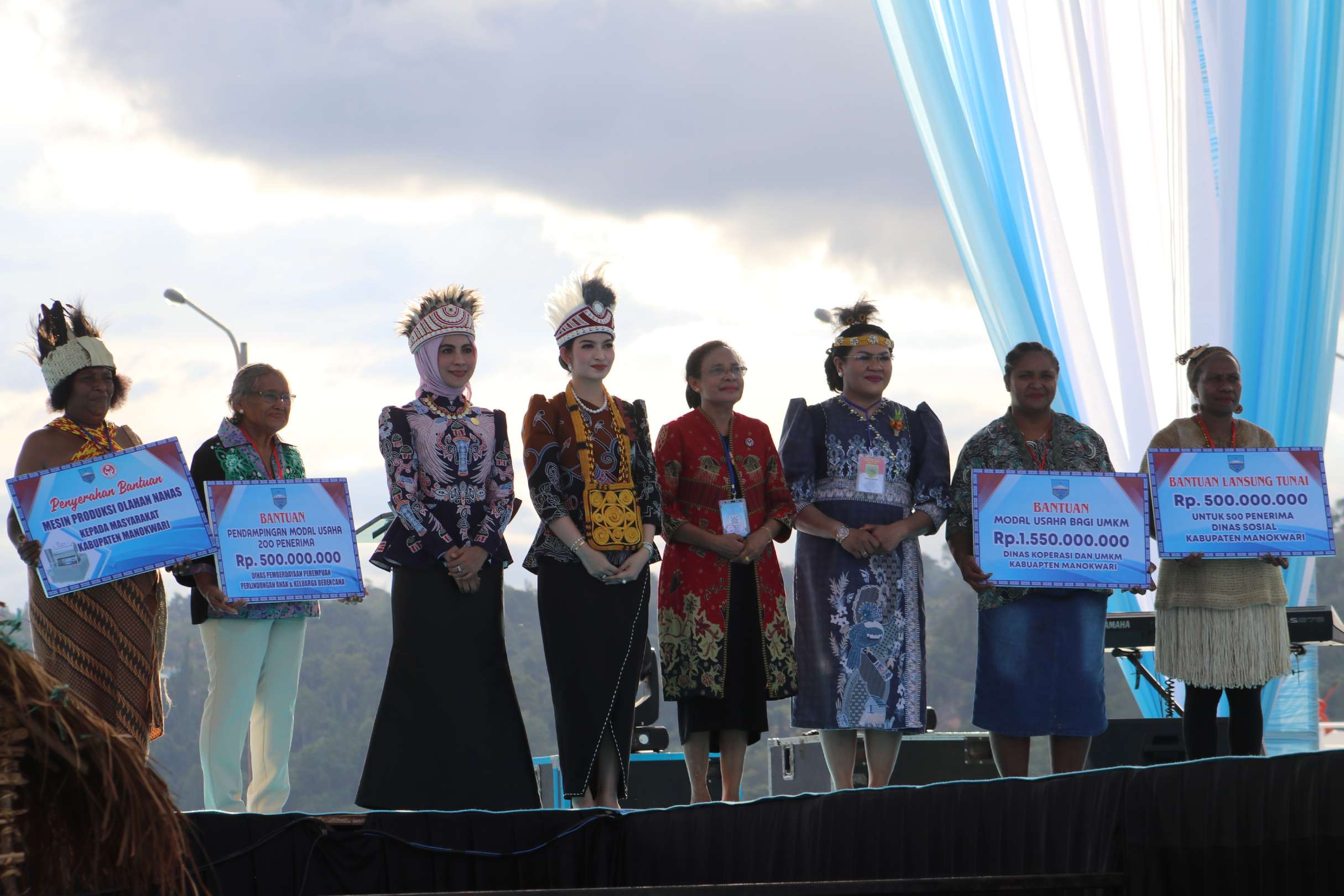 Bantuan diserahkan Selvi usai membuka Festival Mama-mama Kreatif Manokwari, Selasa (4/11/2025).
