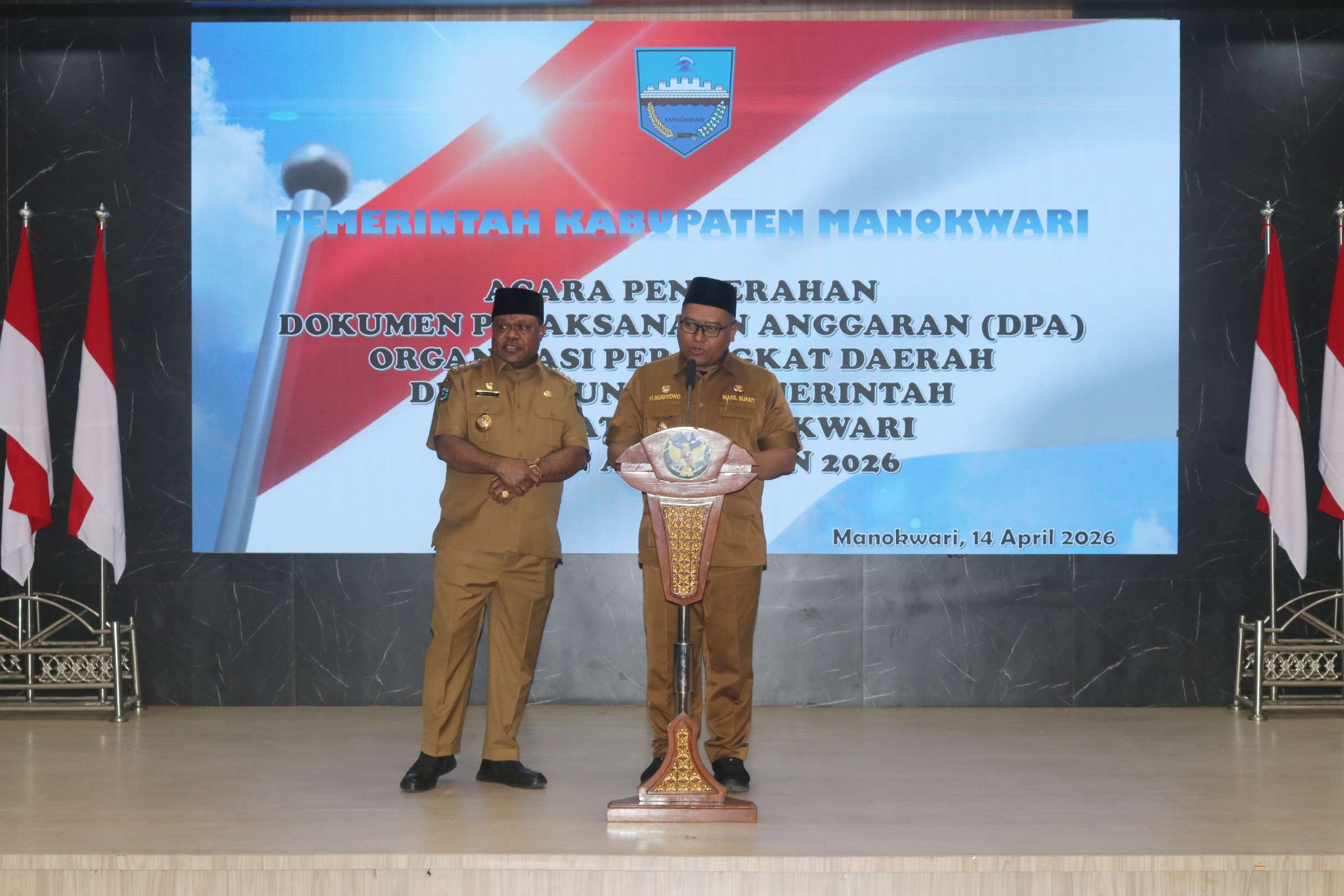MANOKWARI, SURYA ARFAK – Wakil Bupati Manokwari, Mugiyono, meminta seluruh organisasi perangkat daerah (OPD) segera mempercepat pelaksanaan program dan kegiatan setelah penyerahan Dokumen Pelaksanaan Anggaran (DPA) APBD 2026.