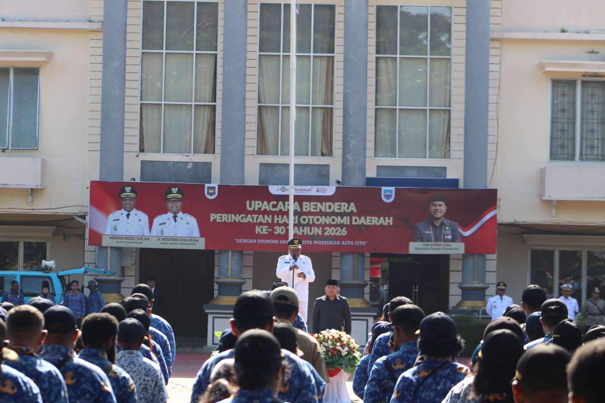 MANOKWARI, SURYA ARFAK – Peringatan Hari Otonomi Daerah ke-30 tahun 2026 menjadi momentum untuk menegaskan kembali pentingnya keseimbangan antara kemandirian daerah dan kepentingan nasional dalam bingkai Negara Kesatuan Republik Indonesia.