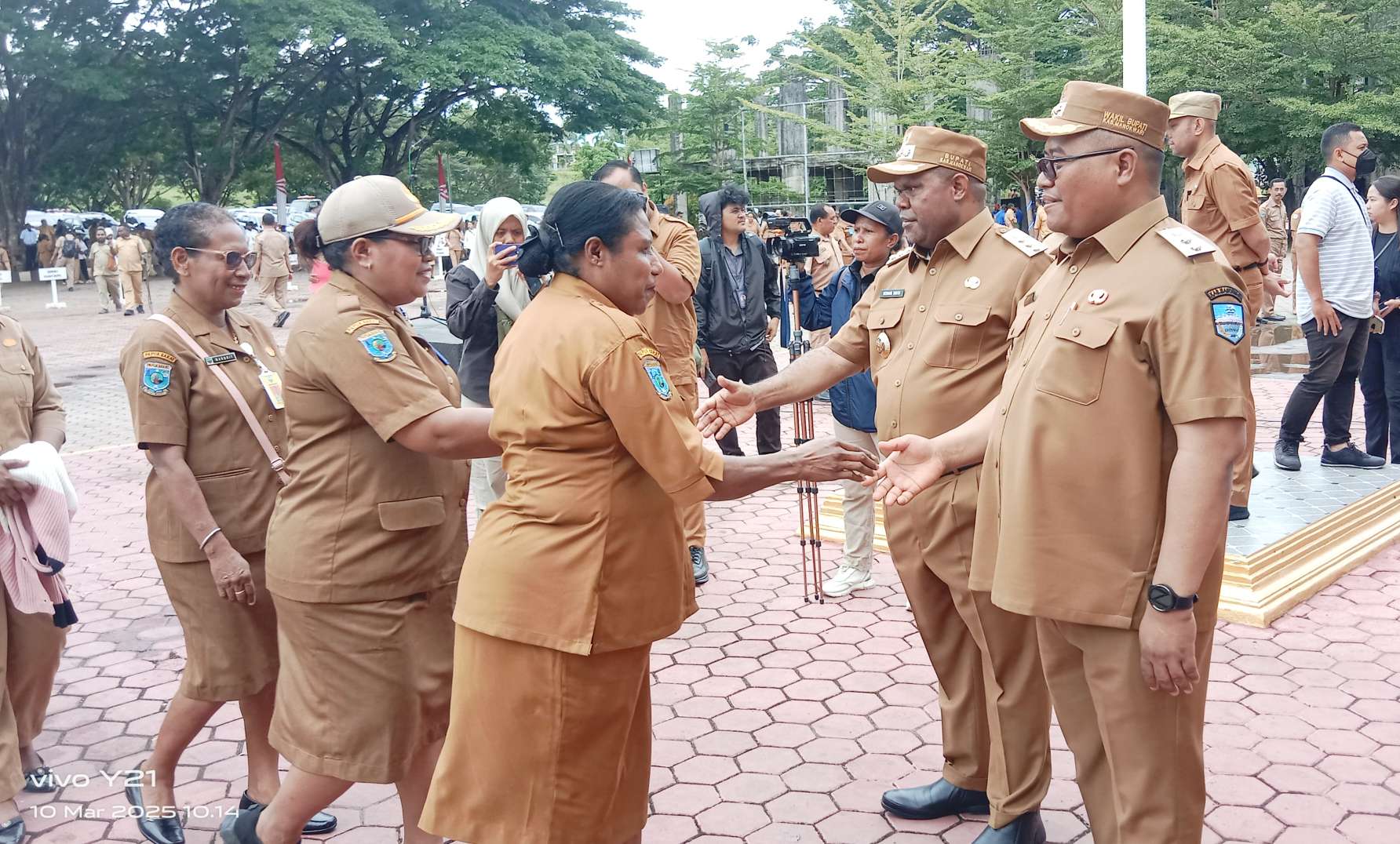 Usai apel, Mugiyono bersyukur karena bersama Bupati Hermus Indou bisa memimpin apel perdana setelah dilantik.