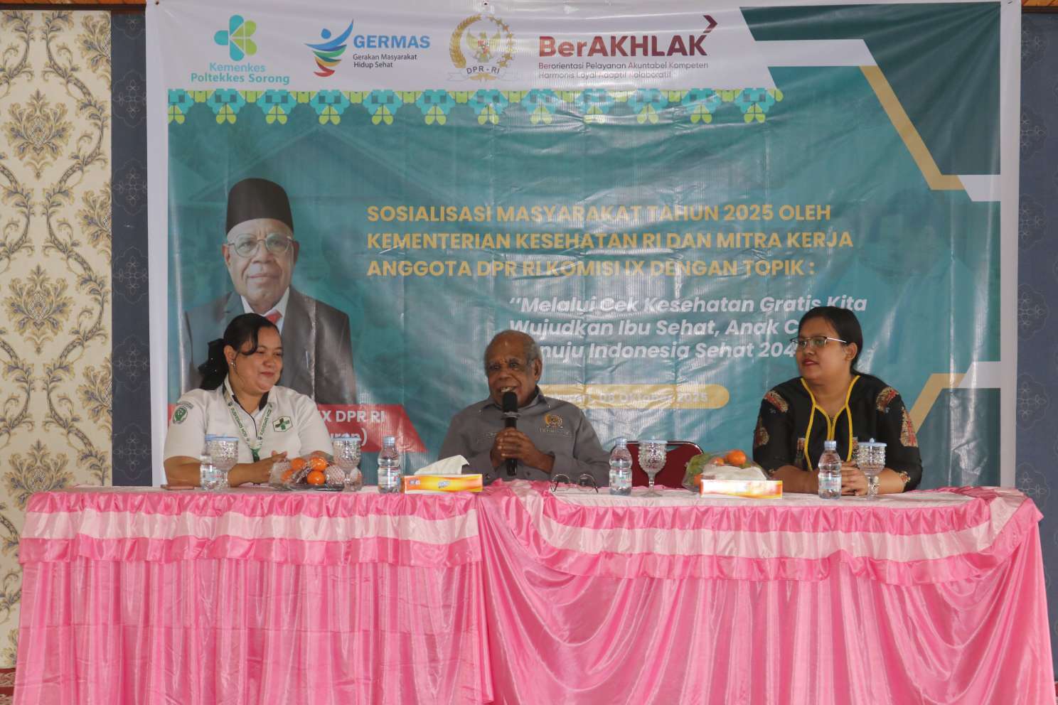 MANOKWARI, SURYA ARFAK – Anggota Komisi IX DPR RI, Obet Rumbruren, menggandeng Poltekkes Kemenkes Sorong untuk menyosialisasikan program Cek Kesehatan Gratis kepada masyarakat Manokwari, Rabu (8/10/2025). Program ini diperkenalkan agar masyarakat semakin sadar pentingnya pemeriksaan kesehatan sejak dini, bukan hanya ketika sakit.
