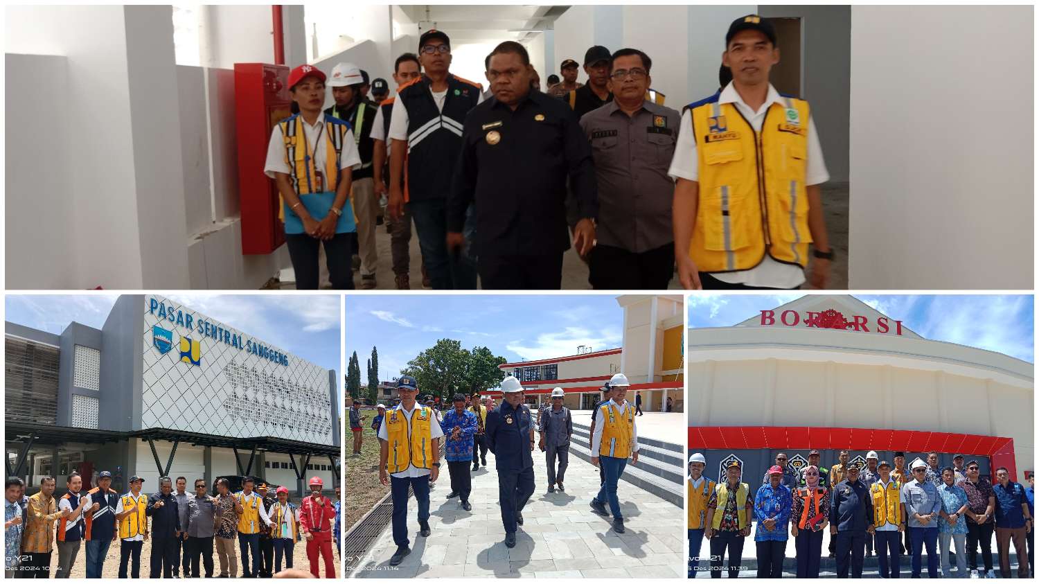 Manokwari, SURYA ARFAK – Bupati Manokwari, Hermus Indou bersama Kepala Balai Wilayah Prasarana Permukiman Wilayah Papua Barat, Wahyu Tri Nugroho, meninjau progres pembangunan Pasar Sentral Sanggeng dan Ruang Terbuka Publik (RTP) Borarsi, Kamis (5/12/2024).