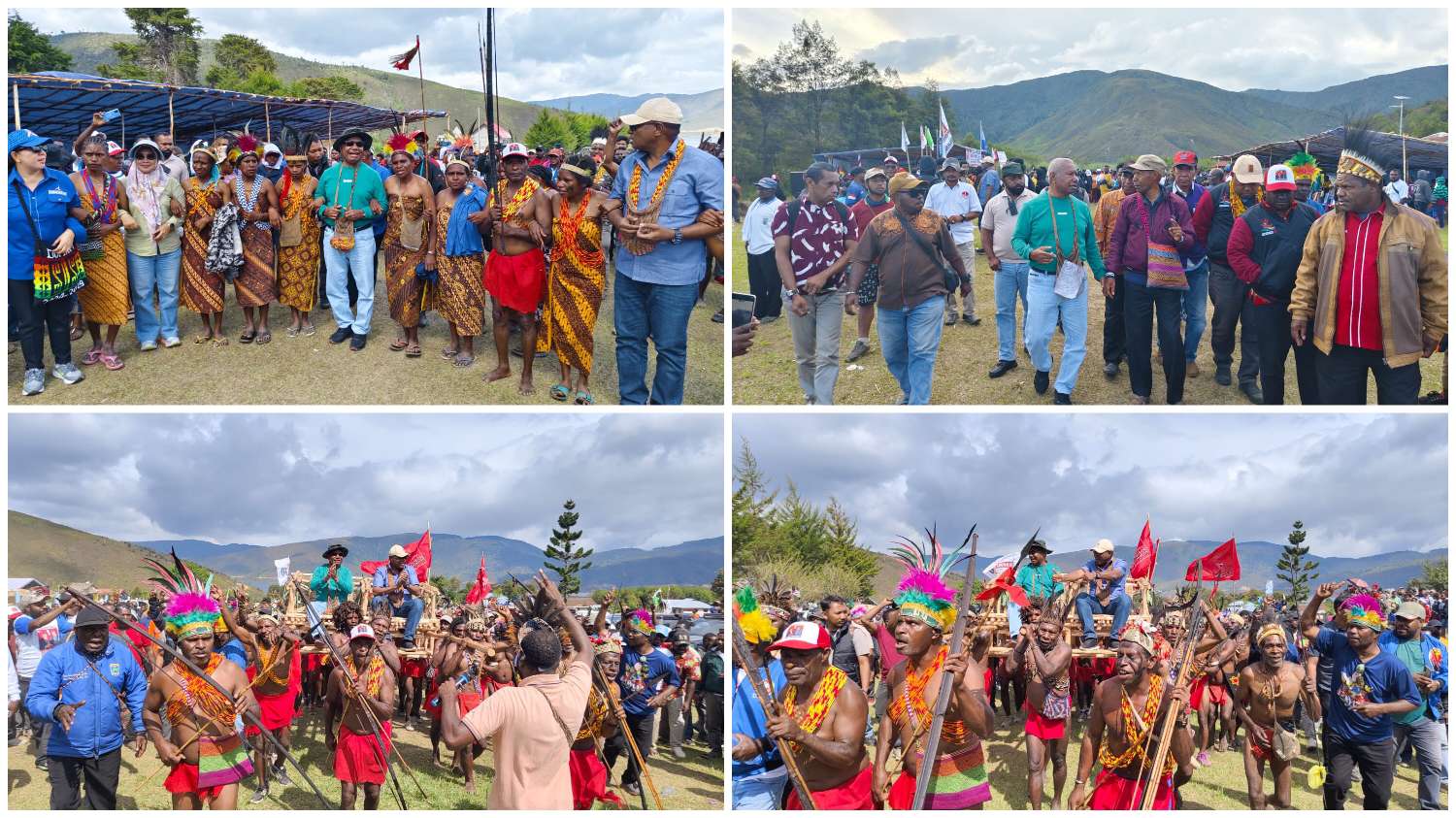 Manokwari, SURYA ARFAK – Pasangan Calon Gubernur dan Wakil Gubernur Papua Barat periode 2024 – 2029, Dominggus Mandacan dan Mohammad Lakotani kembali pulang kampung dan melakukan kampanye terbuka pemenangan DOAMU di Distrik Sururey, Kabupaten Pegunungan Arfak, Senin (18/11/2024).