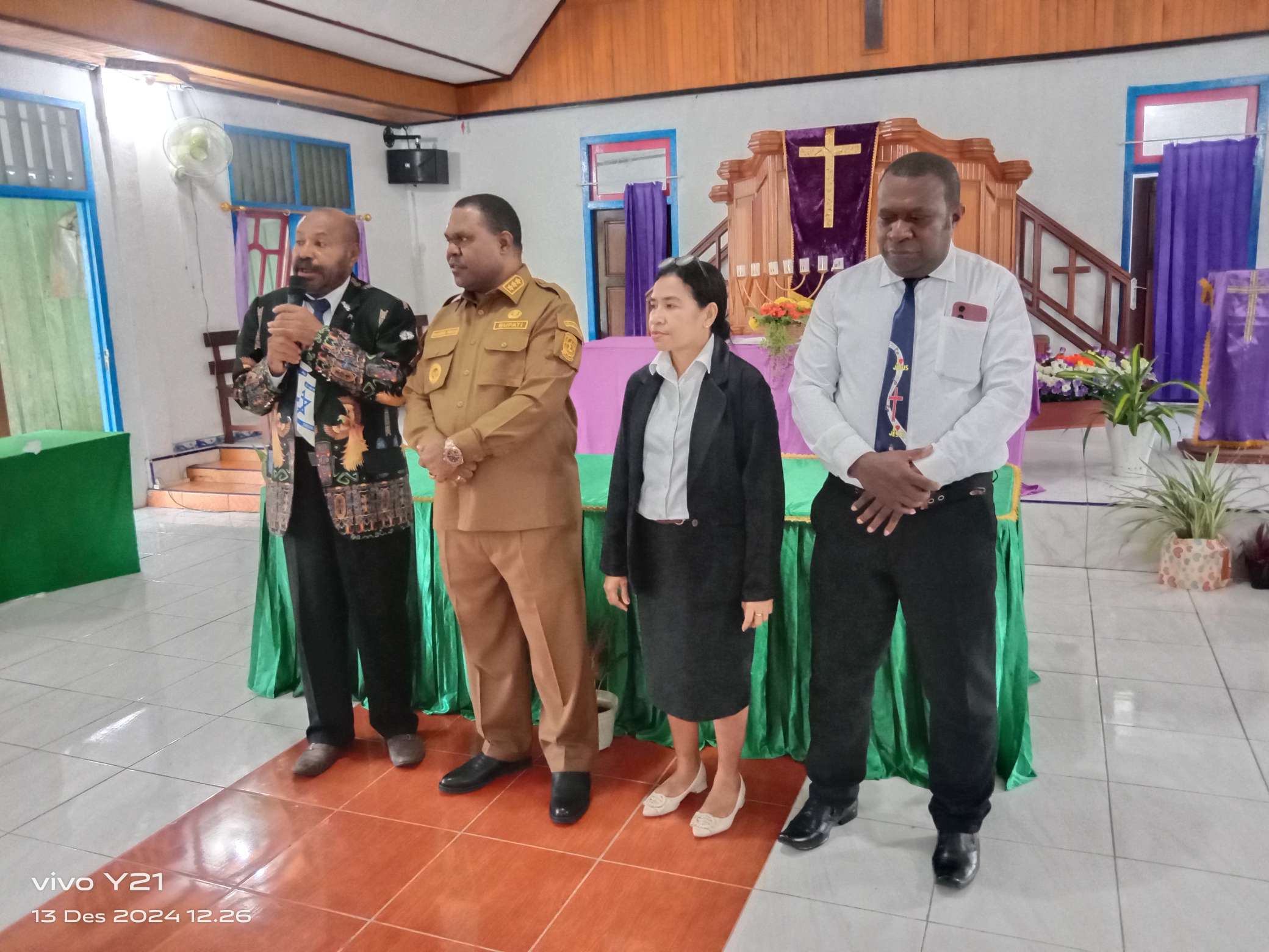 Manokwari, SURYA ARFAK – Bupati Manokwari, Hermus Indou, menghadiri Rapat Kerja (Raker) III Klasis GKI Tanah Rubuh di Gereja Effata Warkai-Mupi, distrik Tanah Rubuh, Jumat (13/12/2024).