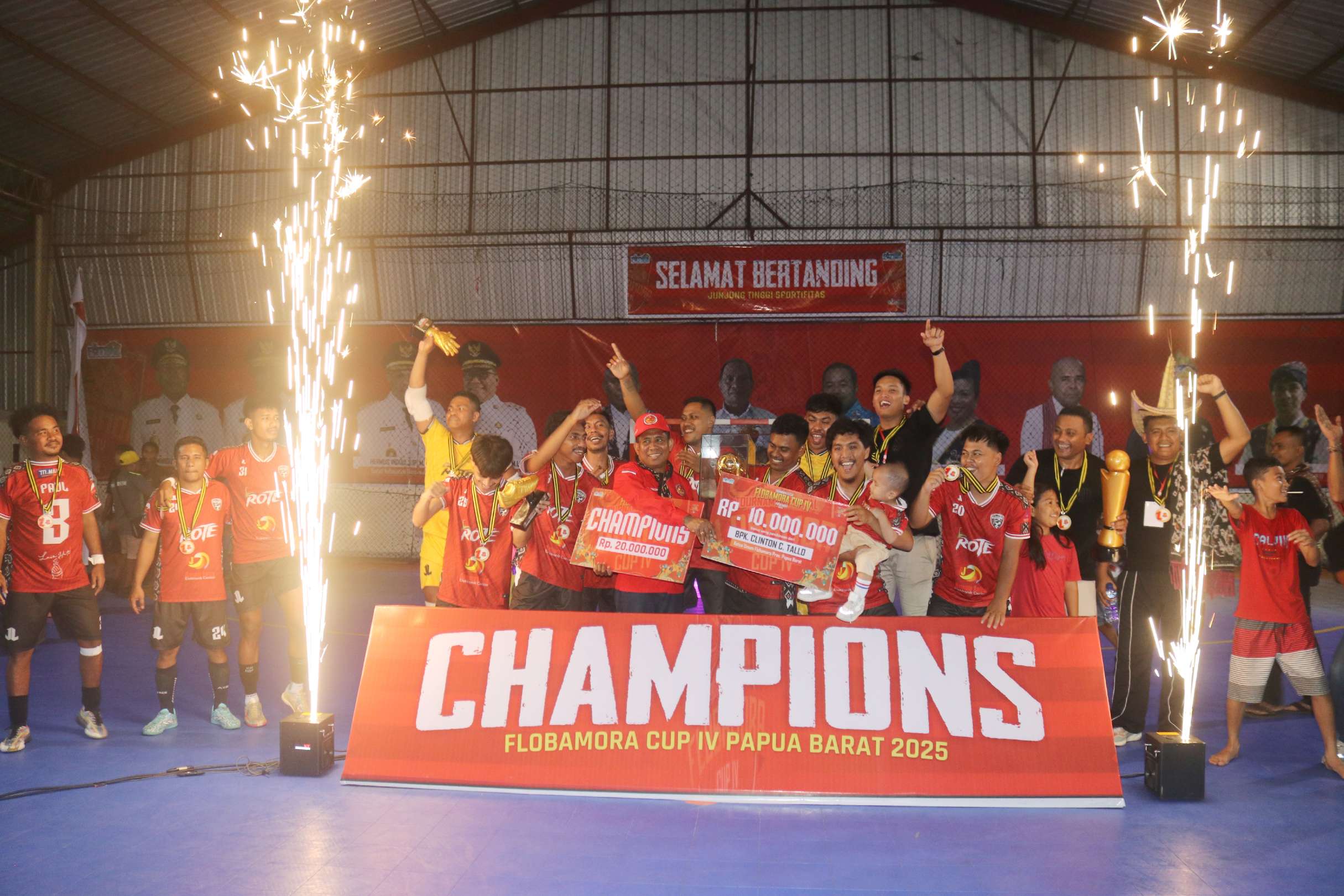 MANOKWARI, SURYA ARFAK — Turnamen futsal Flobamora Cup IV tahun 2025 resmi ditutup pada Minggu (2/11/2025) dengan tim Rote Ndao keluar sebagai juara. Ajang ini diharapkan menjadi momentum mempererat kebersamaan warga Flobamora di Papua Barat dan ke depan akan diperluas menjadi turnamen antar-kabupaten.