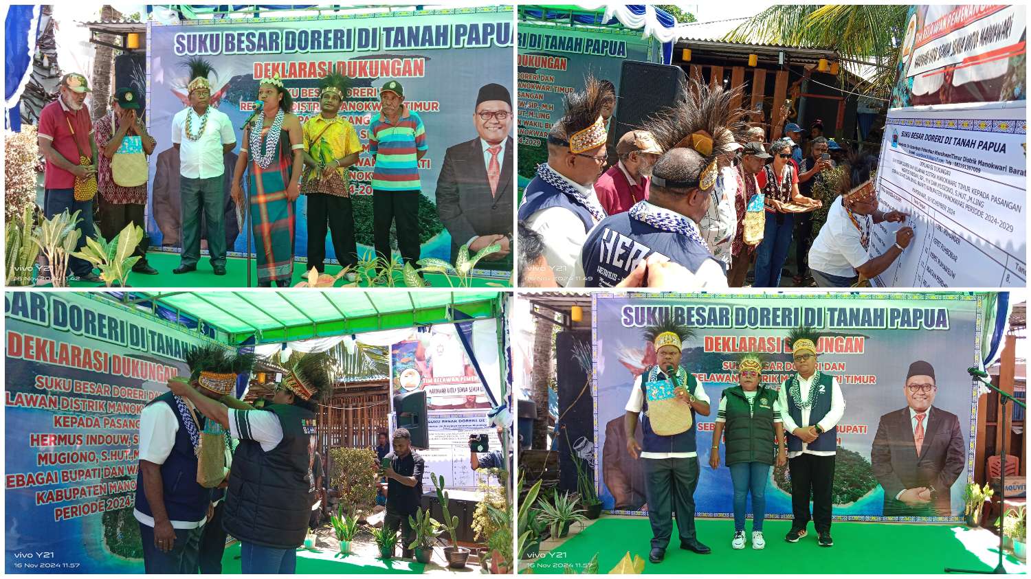 Dalam deklarasi itu, Blandina menyatakan Suku besar Doreri menyatakan mendukung penuh Hermus Indou dan Mugiyono sebagai Bupati dan Wakil Bupati Manokwari periode 2025-2030.