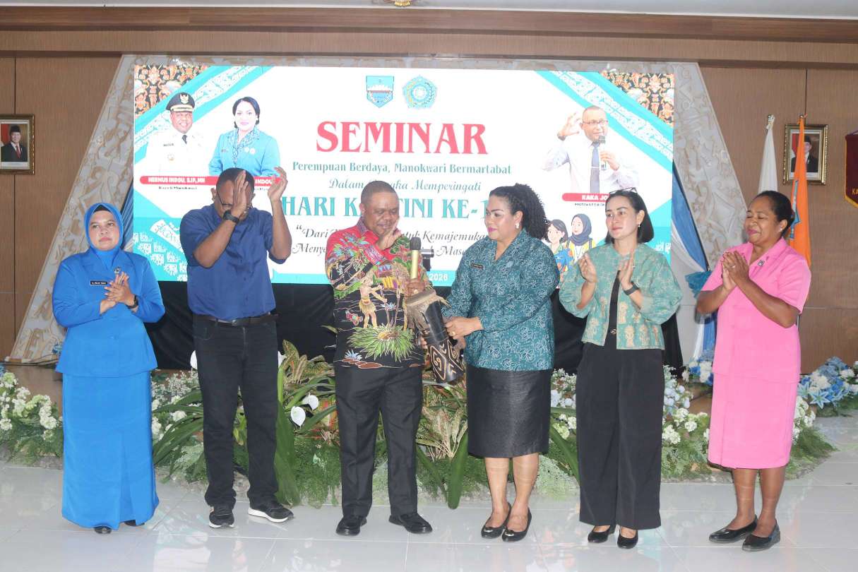 Tema seminar “Perempuan Berdaya, Manokwari Bermartabat: Dari Perempuan untuk Kemajemukan, Menyentuh Hati Membentuk Masa Depan” menegaskan bahwa kemajemukan daerah tidak hanya ditentukan oleh pembangunan fisik, tetapi juga oleh kualitas karakter dan kontribusi perempuan dalam membangun harmoni sosial di tengah masyarakat.