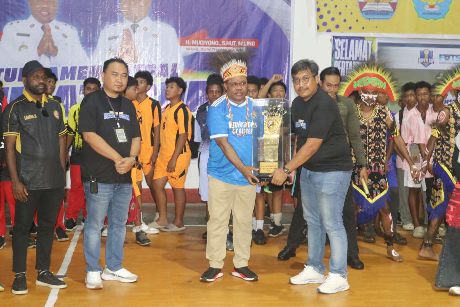 MANOKWARI, SURYA ARFAK — Turnamen futsal Bupati Cup Manokwari 2025 resmi dibuka oleh Bupati Manokwari, Hermus Indou, Kamis (23/10/2025). Ajang bergengsi ini diikuti 81 tim dari berbagai kategori dengan total hadiah mencapai Rp115 juta, ditambah piala bergilir Bupati Manokwari, piala tetap, medali, dan piagam penghargaan untuk kategori pelajar.