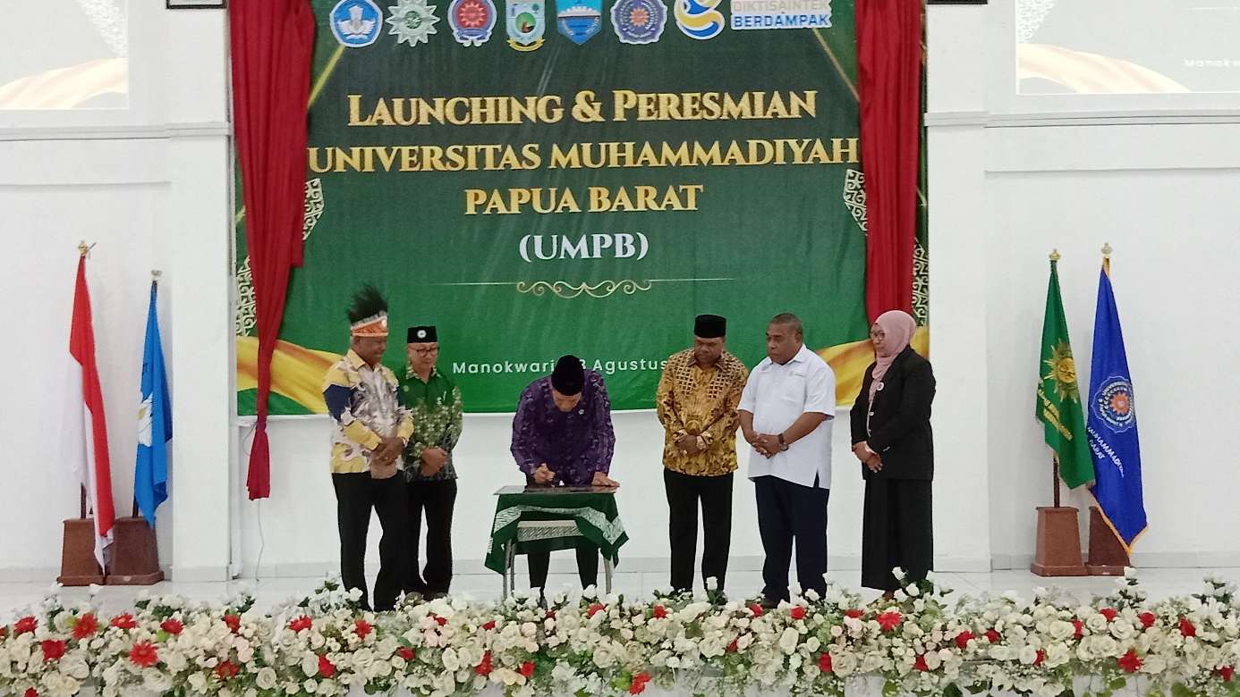 MANOKWARI, SURYA ARFAK – Sekolah Tinggi Keguruan dan Ilmu Pendidikan (STKIP) Muhammadiyah resmi berubah nama menjadi Universitas Muhammadiyah Papua Barat (UMPB). Perubahan nama itu ditandai dengan launching oleh Wakil Menteri Pendidikan Tinggi, Riset, dan Teknologi, Fauzan, Sabtu (23/8/2025).